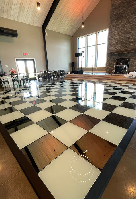 From elegant glass-top dance floors to classic looks like black-and-white checkered floors, all-white layouts, or sleek all-black designs, every detail is customizable to perfectly fit your venue and vision. Each floor can be built to any size, ensuring a seamless fit for both intimate gatherings and large-scale celebrations.